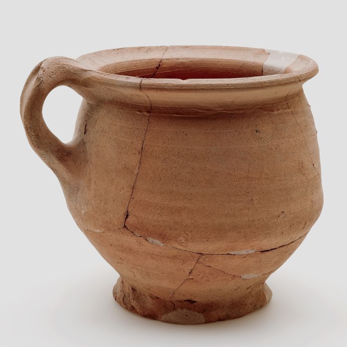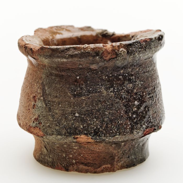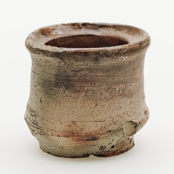 Aardewerk zalfpot, taps model met versmalling boven ...