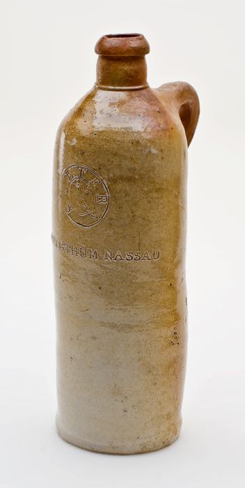 Steengoed mineraalwaterkruik, cilindrisch met ronde ...