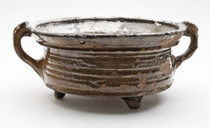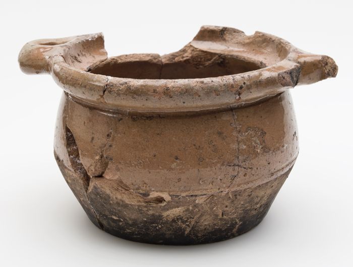 Aardewerk zalfpot, buikmodel, inwendig geglazuurd