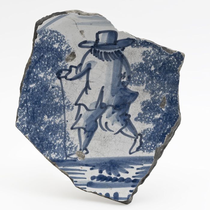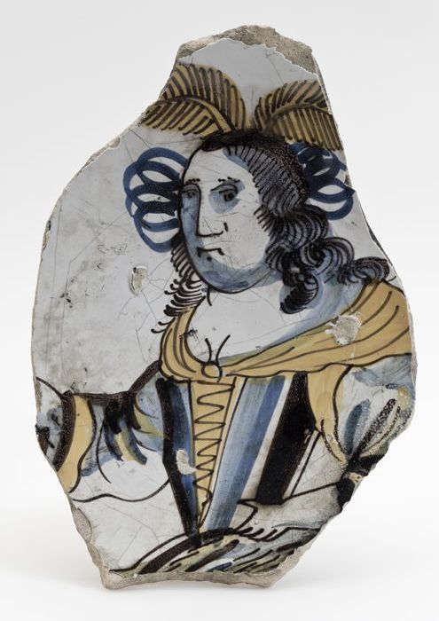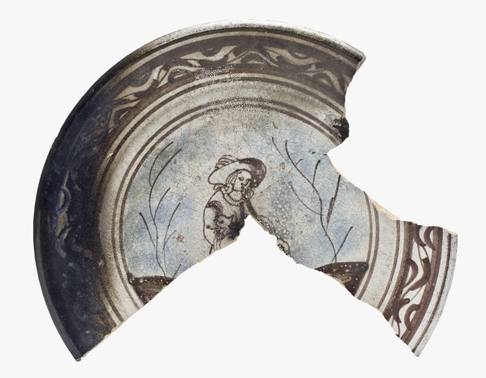 Fragment van een majolica schotel waarop een persoon...