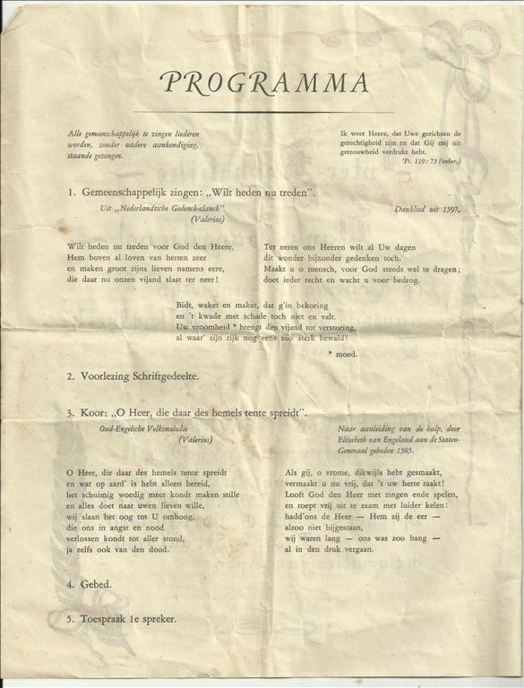Programma Inter-Kerkelijke Dank-zangdienst, Den Haag...
