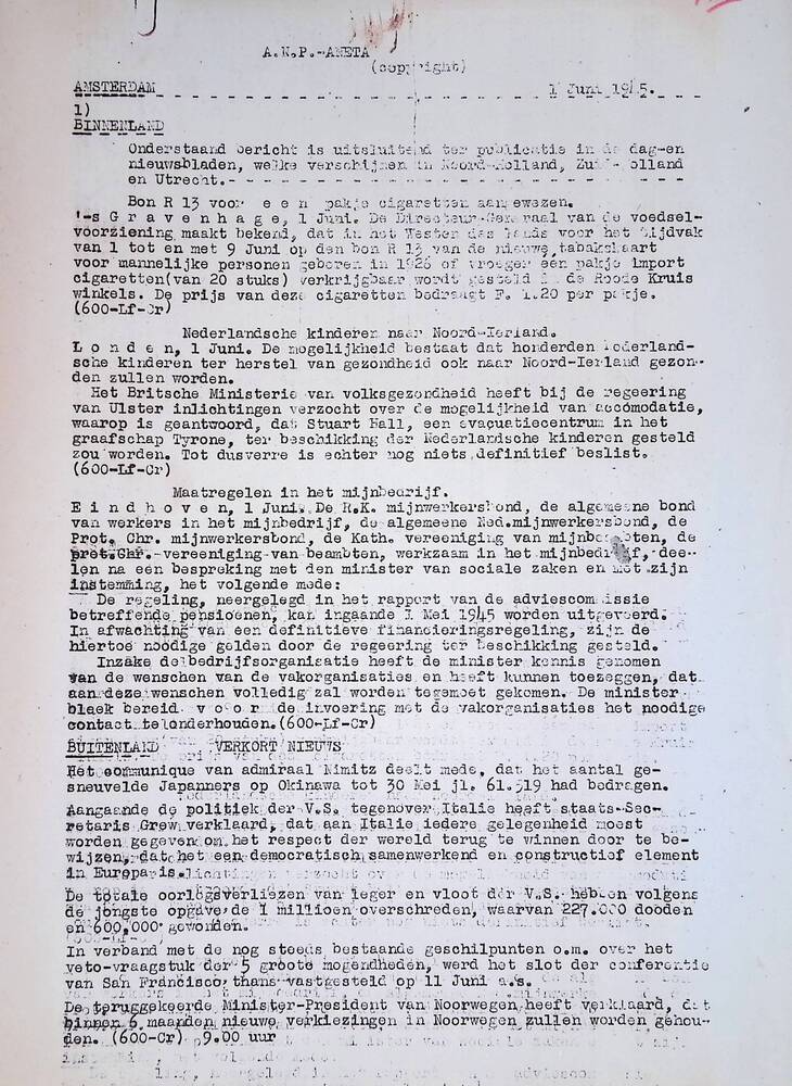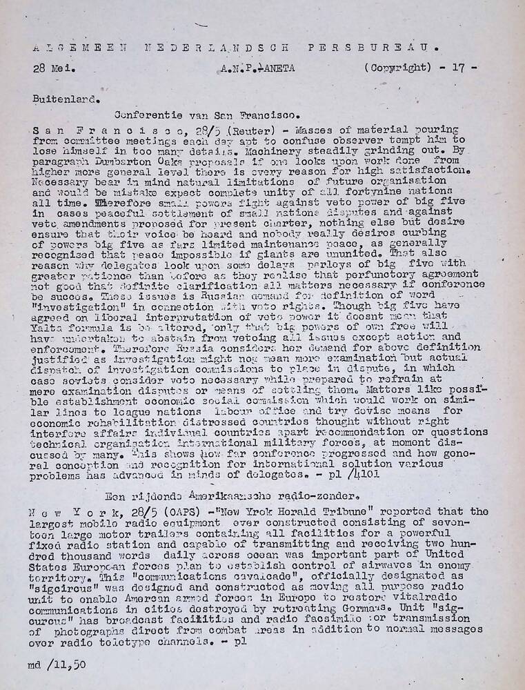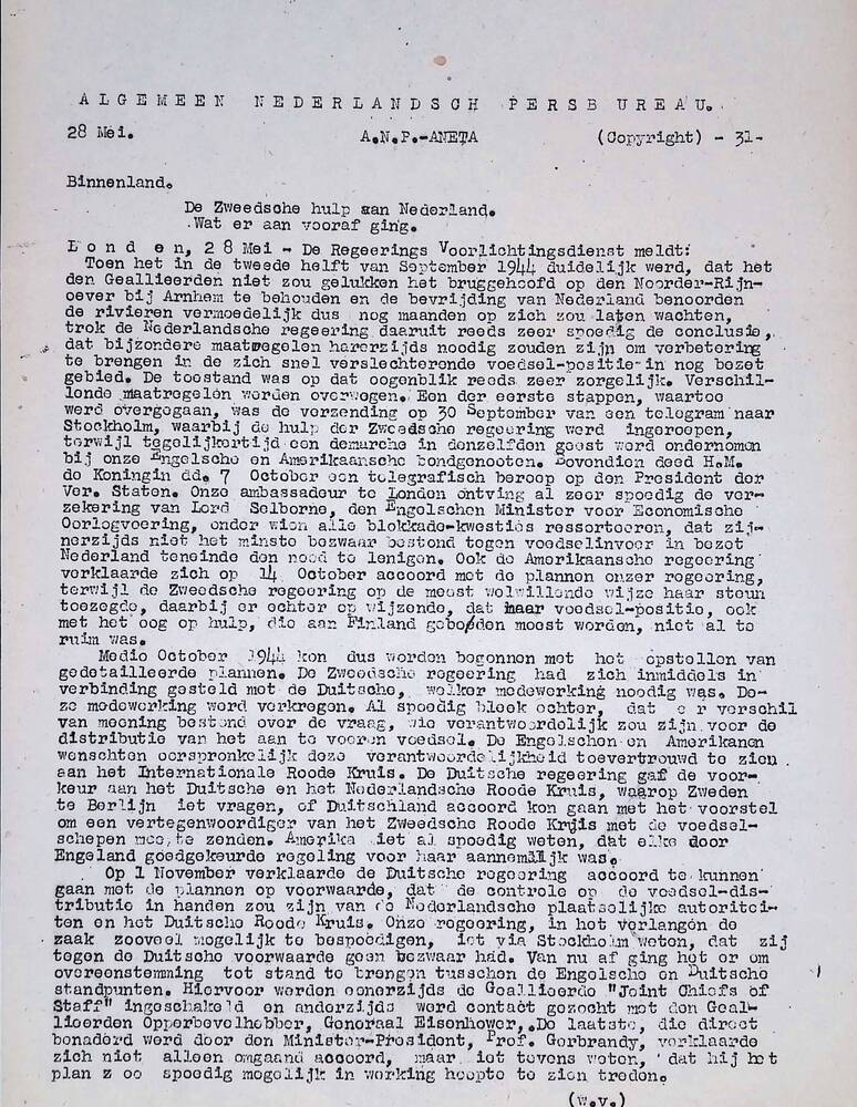 Algemeen Nederlandsch Persbureau, mededelingen, 28 m...