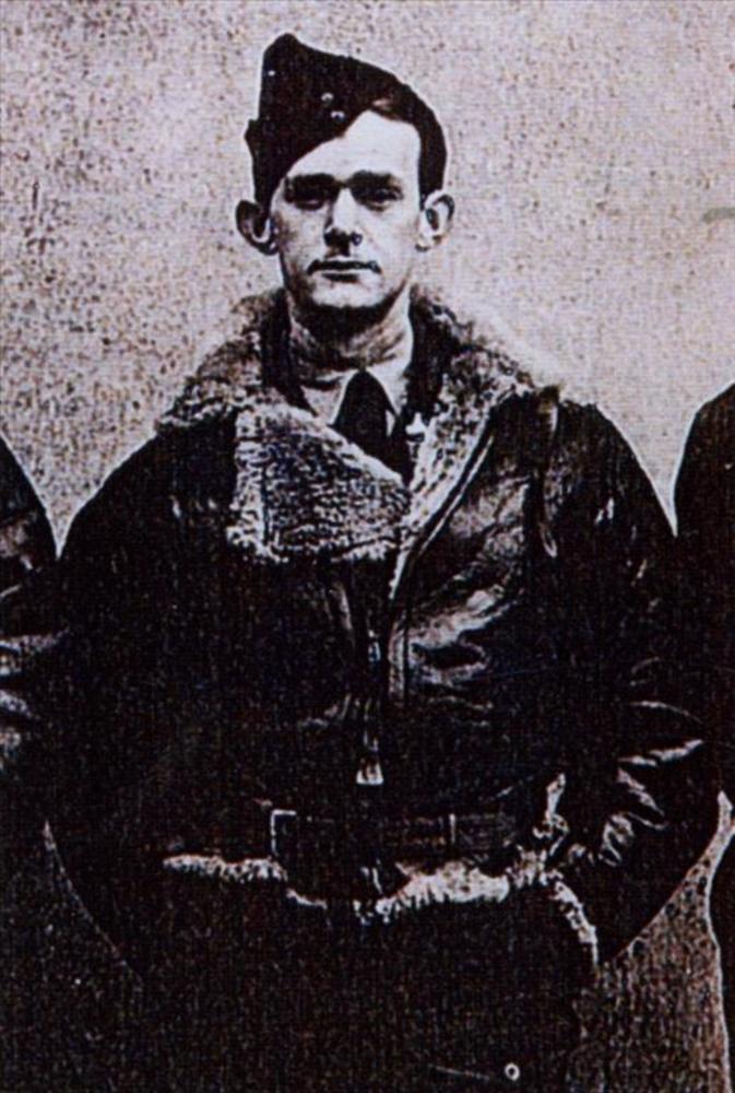 militair RAF in Irving vliegjack; F/O. L.A. Ellis