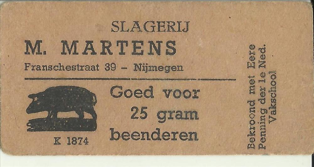 Slagerij M.Martens te Nijmegen, bon goed voor 25 gra...