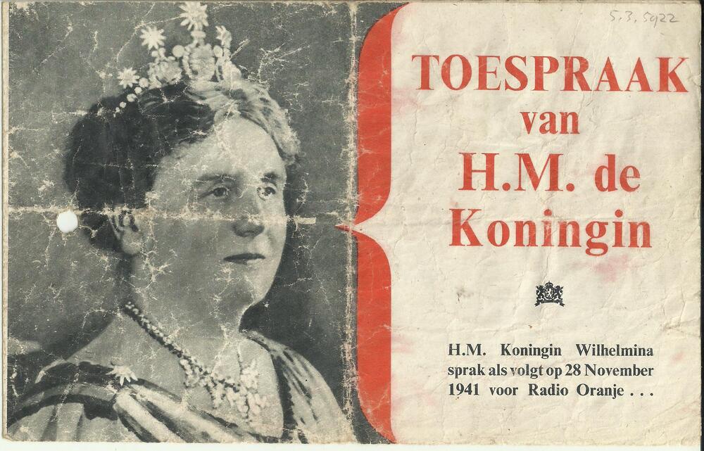 Pamflet: "Toespraak van H.M. de Koningin. H.M. Konin...