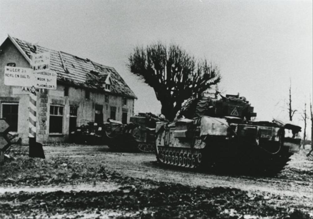 twee Churchill tanks bij hotel De Oude Molen in Groe...
