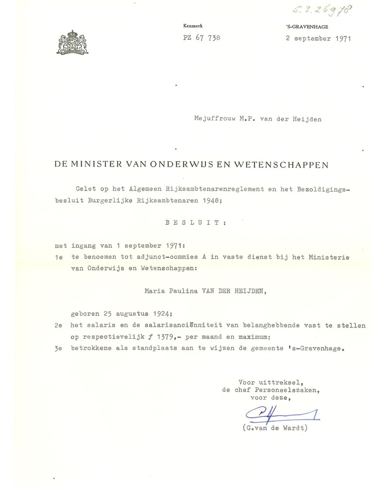 De minister van Onderwijs en Wetenschappen aan mejuf...