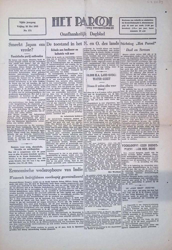 Het Parool, 18 mei 1945, 5e jaargang, No 171