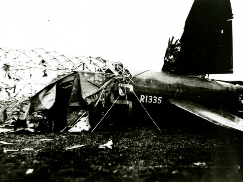 Foto van wrak van Vickers Wellington R1335. Tekst ac...