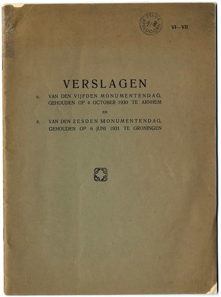 Verslagen : a. van den vijfden monumentendag gehoude...