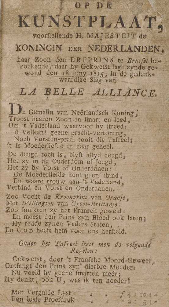 op de Kunstplaat, voorstellende H. Majesteit de koni...