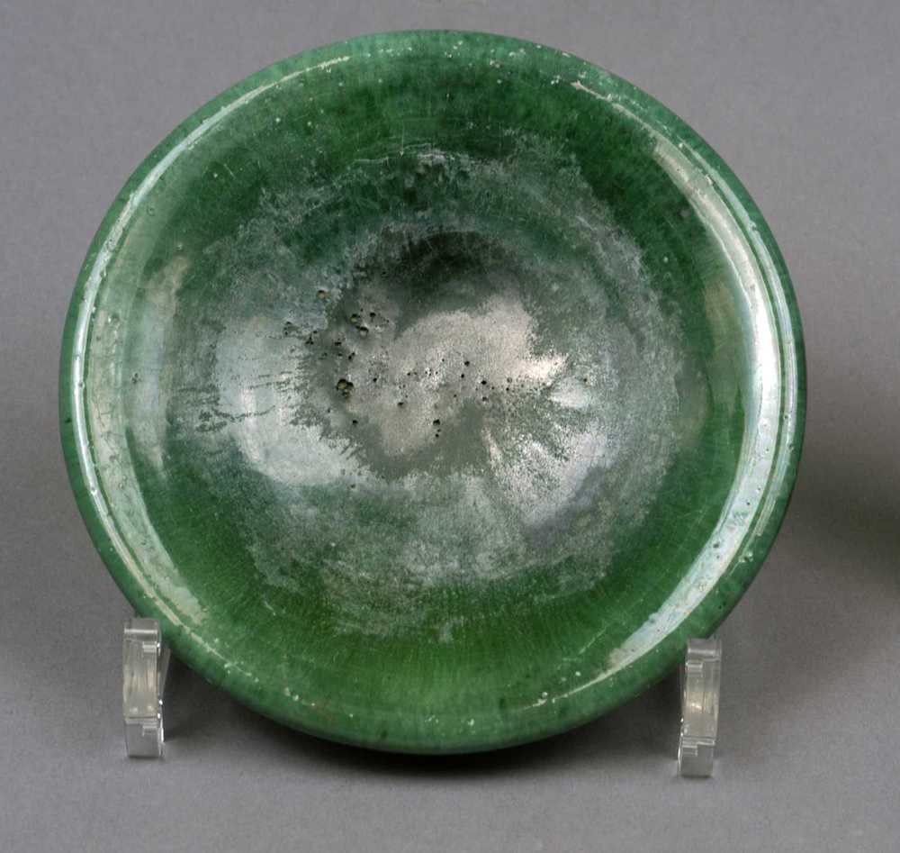 bord van keramiek, groen van kleur.