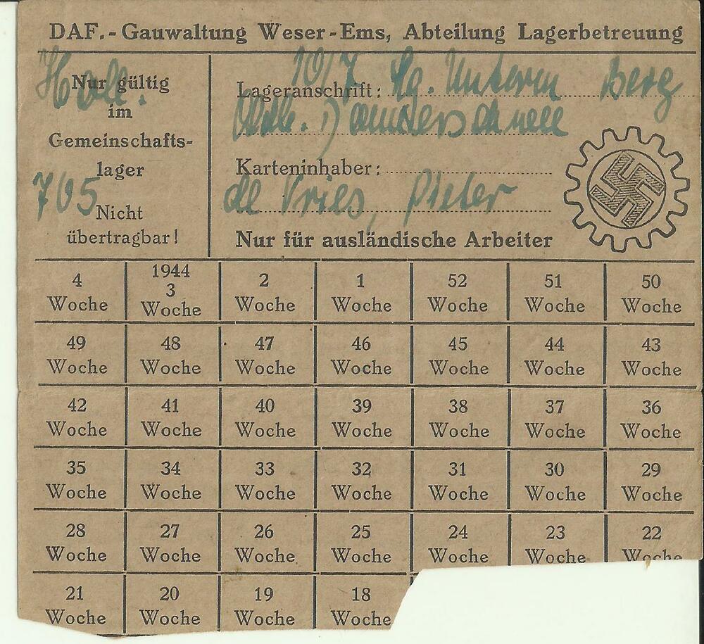 Raucherkarte 1943, für ausländische Arbeiter