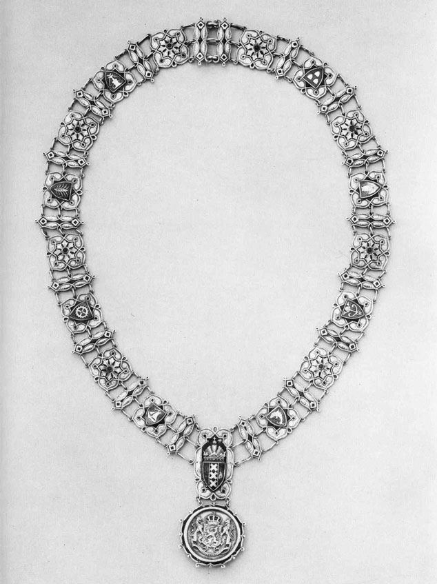 Ambtsketen van de wethouders van Amsterdam als verte...