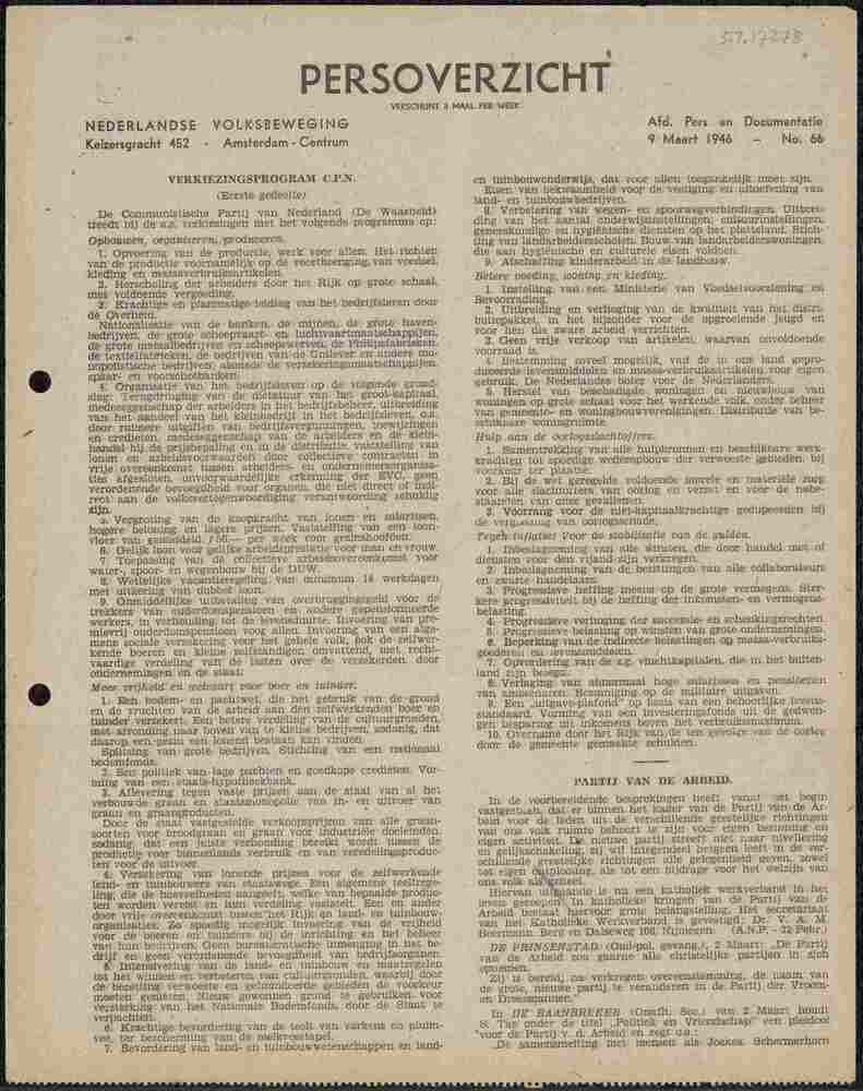 Persoverzicht Nederlandse Volksbeweging, no. 66, 9 m...