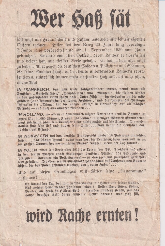 Pamflet: "Unverdunkelt!/Wer Hass sät" (507)