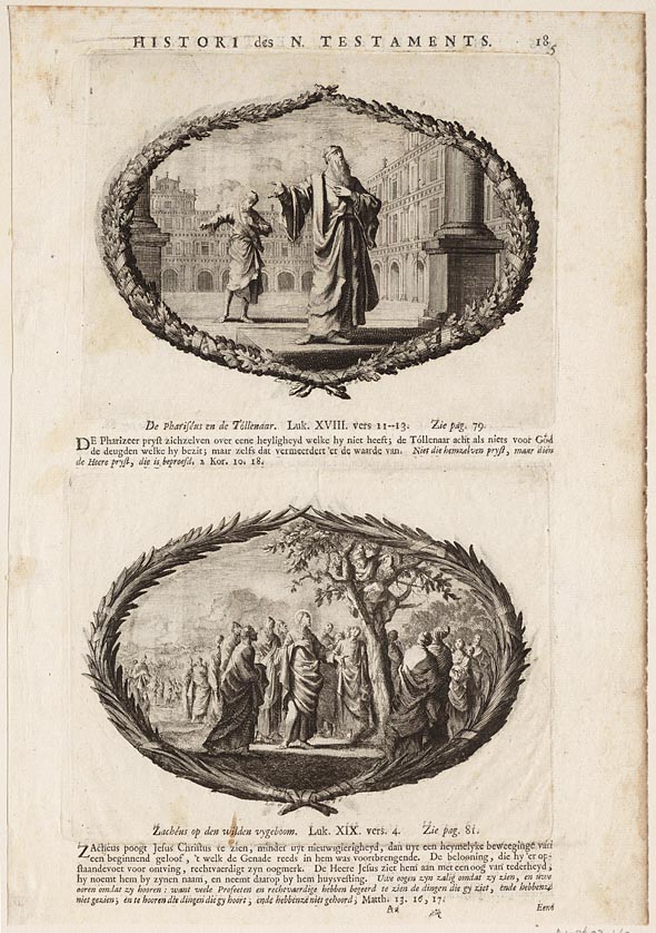 De Farizeër in de voorhof van de tempel, achter hem ...