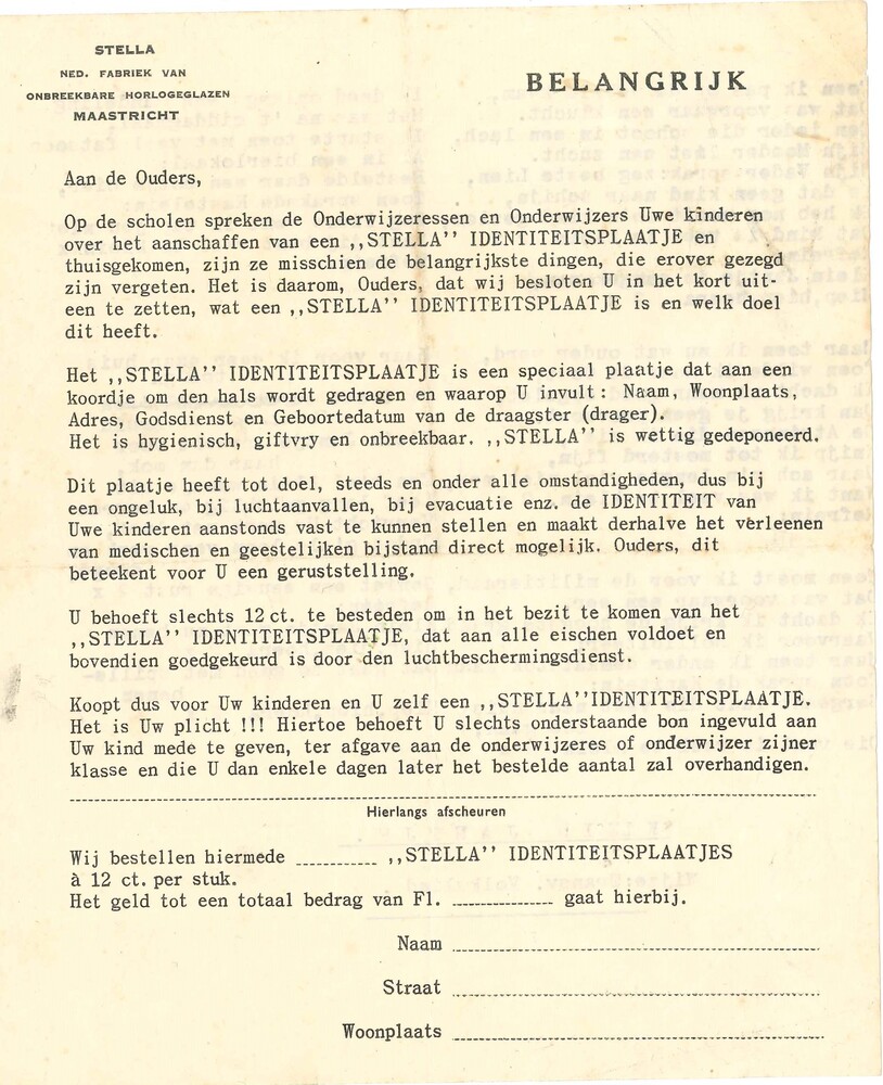 advertentiebrief voor identiteitskaartje, liedje op ...