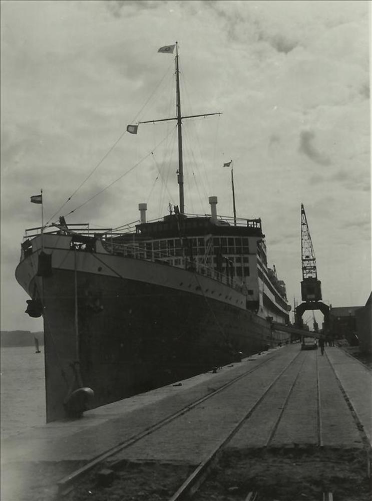 Indië album; koloniale tijd; ss "Baloeran", afgemeer...