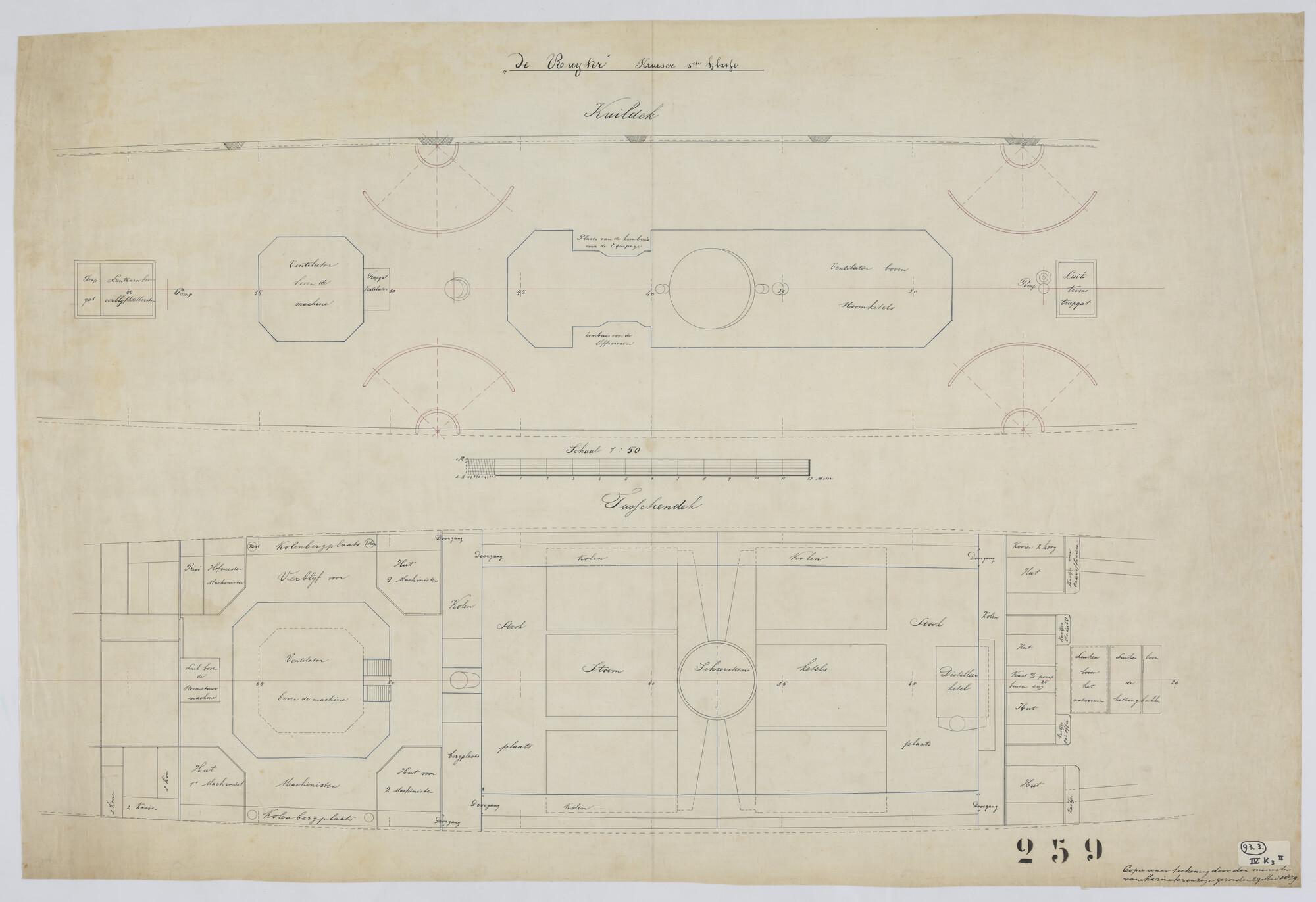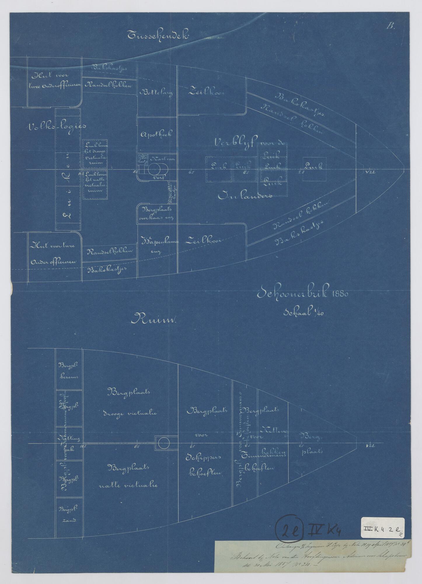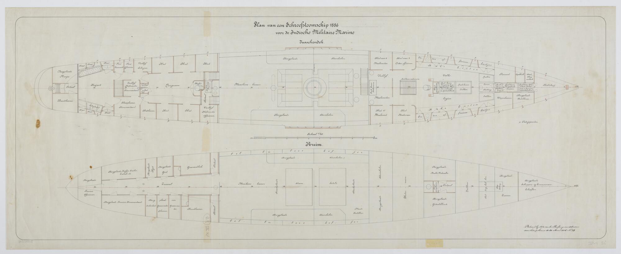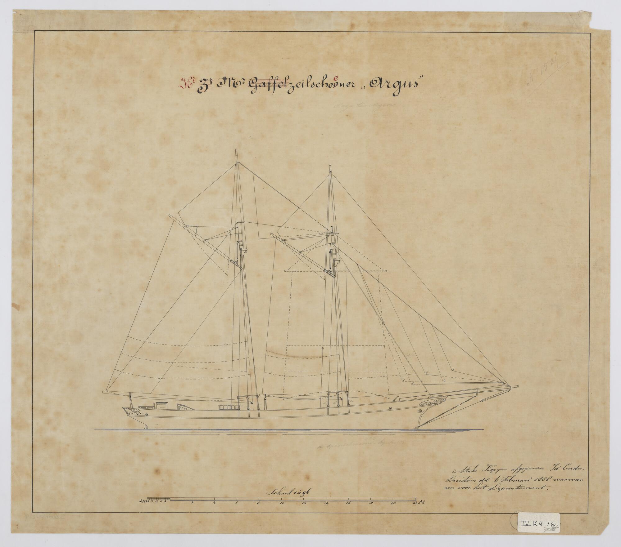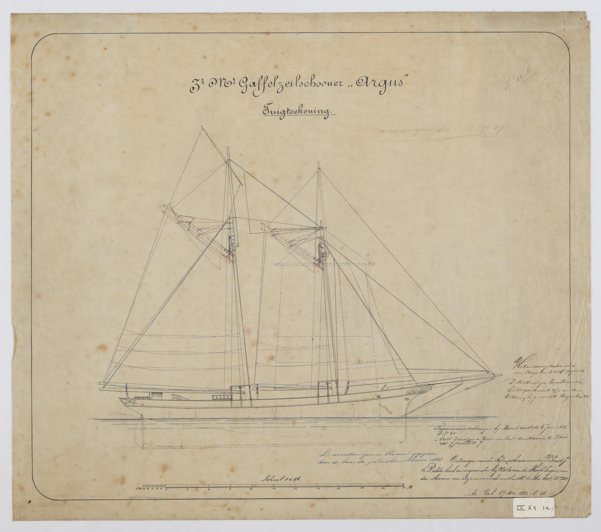 De schoener Zr.Ms. 'Argus', 1881. Bovendek en tussen...