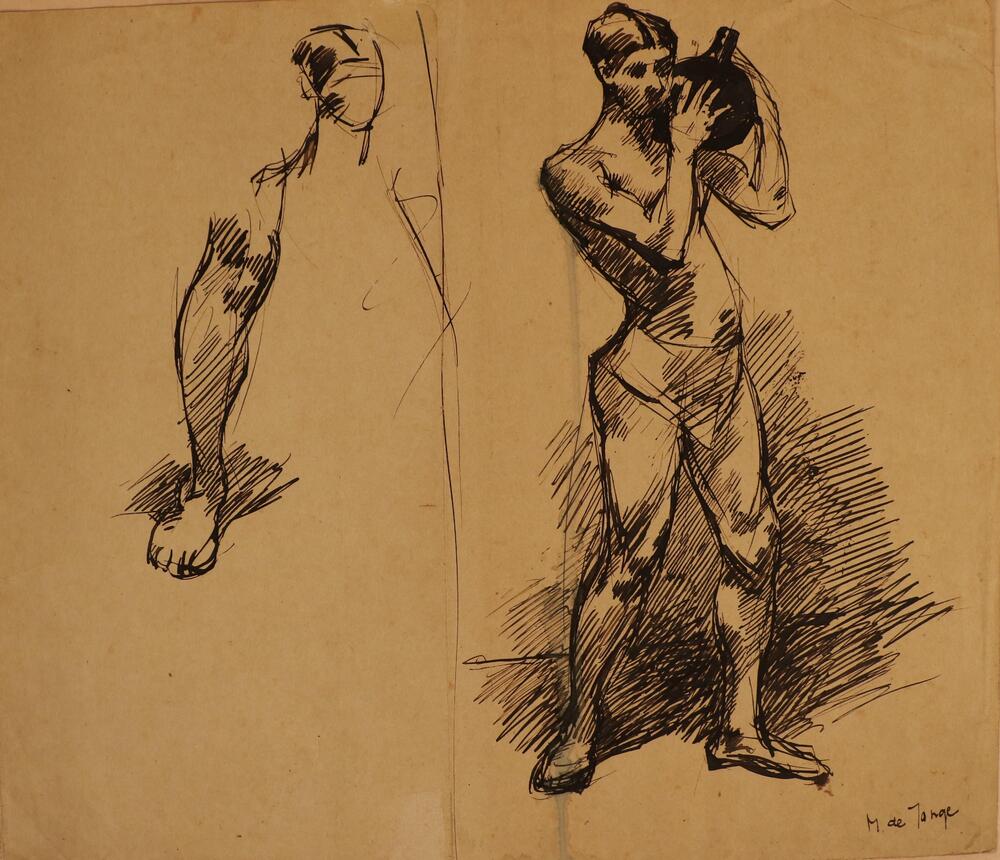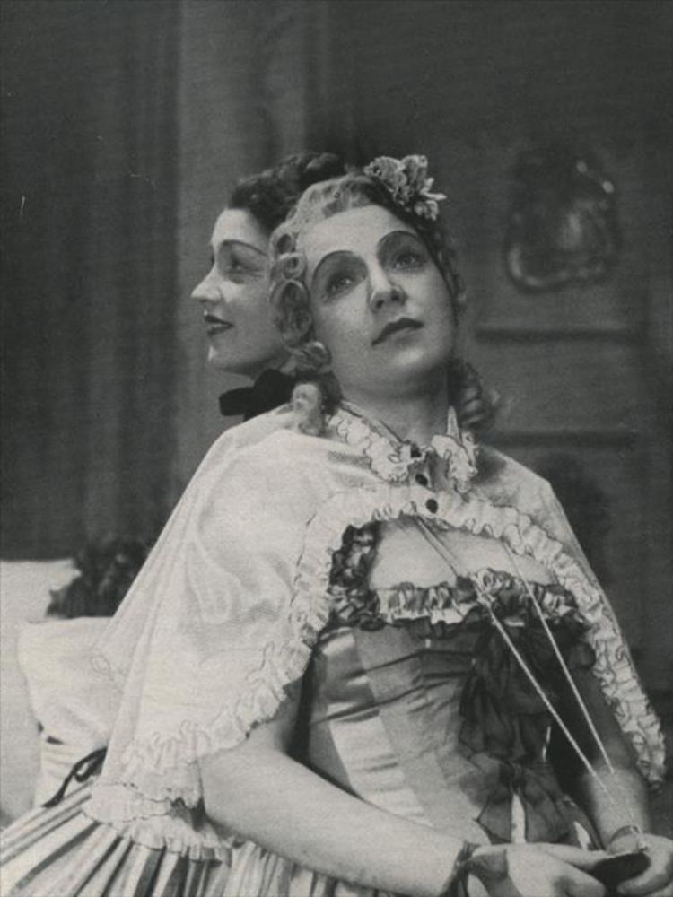 Vel met twee foto's: links twee acteurs in semi-moor...