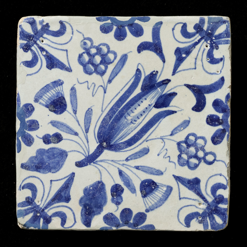 tegel van aardewerk met tinglazuur, voorstellende: h...