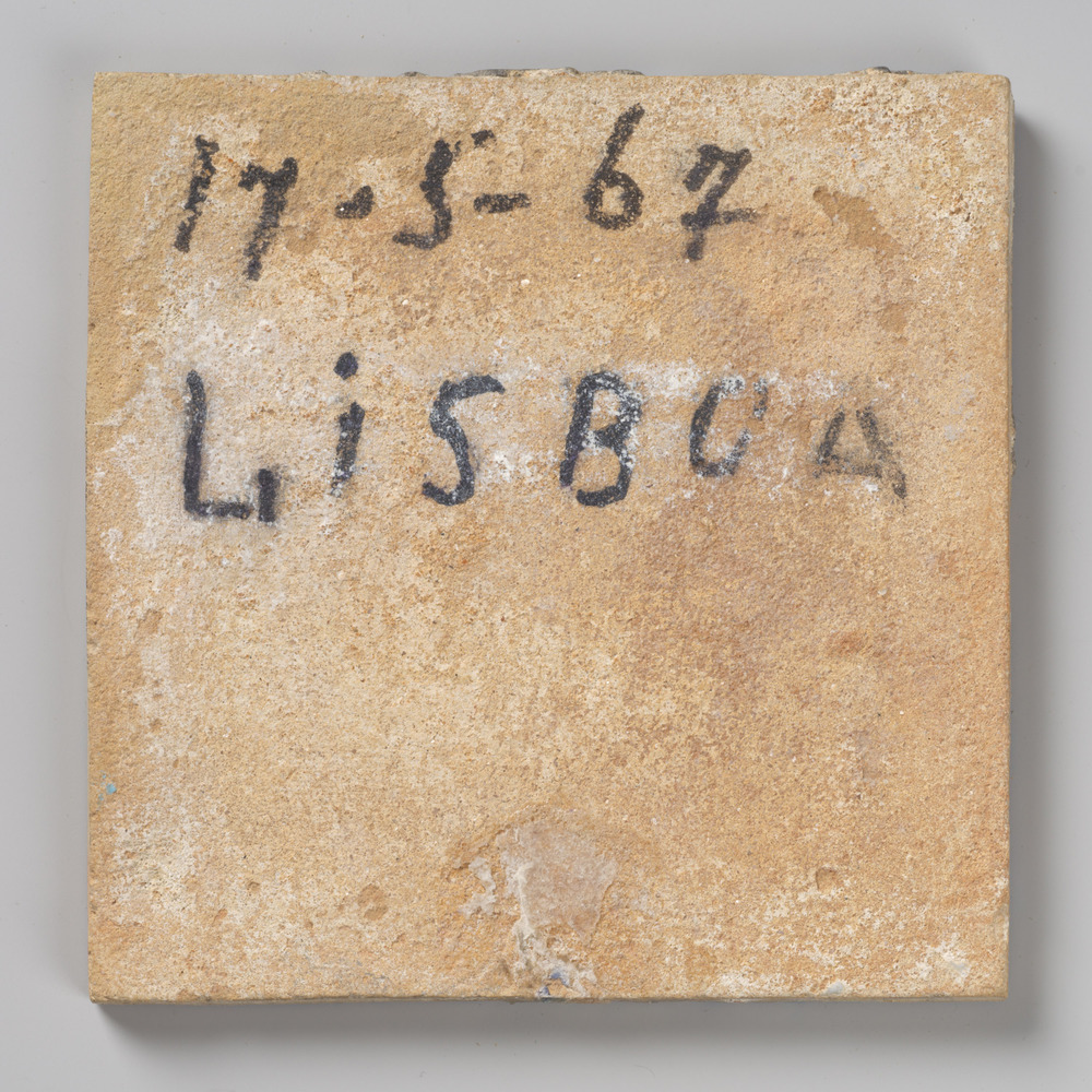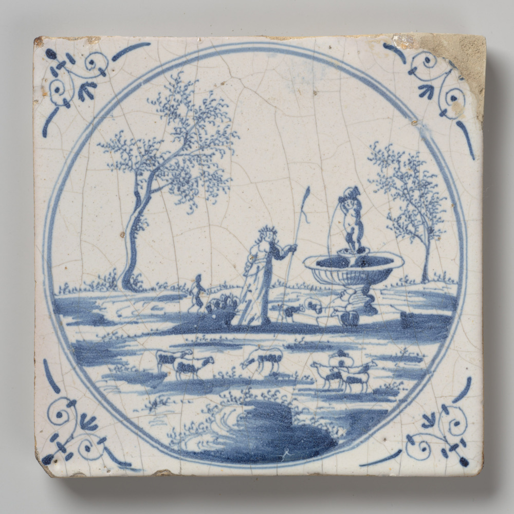 Tegel van keramiek met tinglazuur, voorstellende: or...