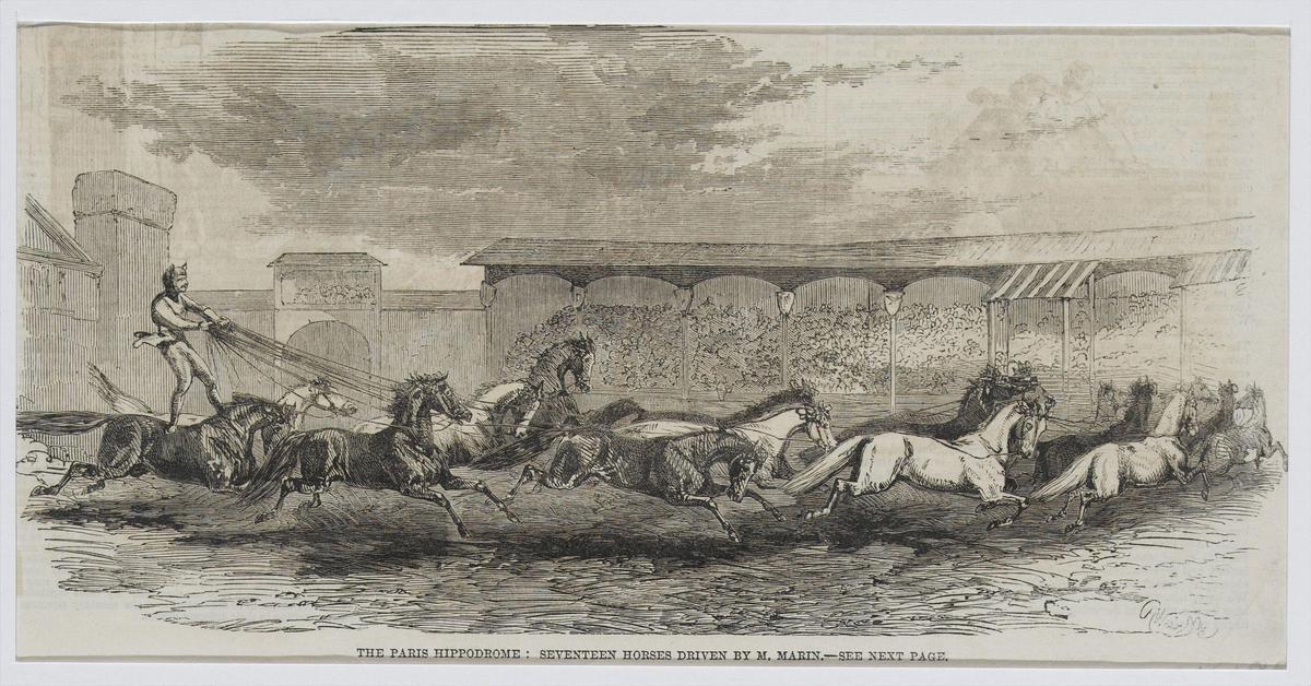The Paris Hippodrome: seventeen horses driven by M. ...