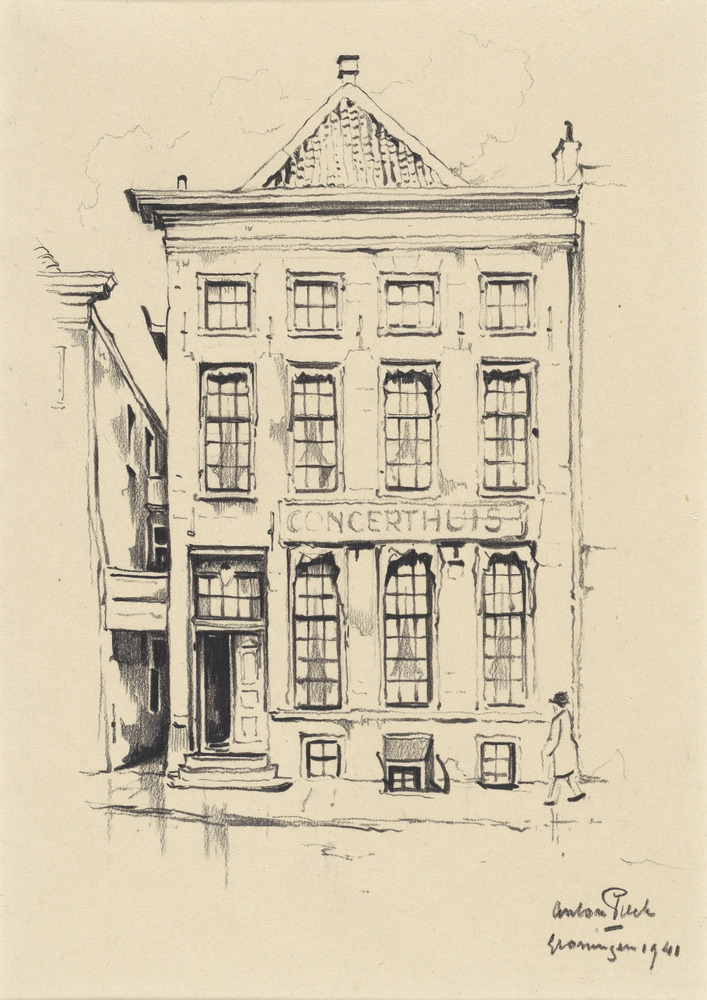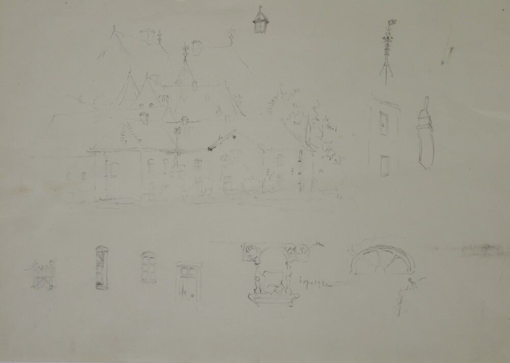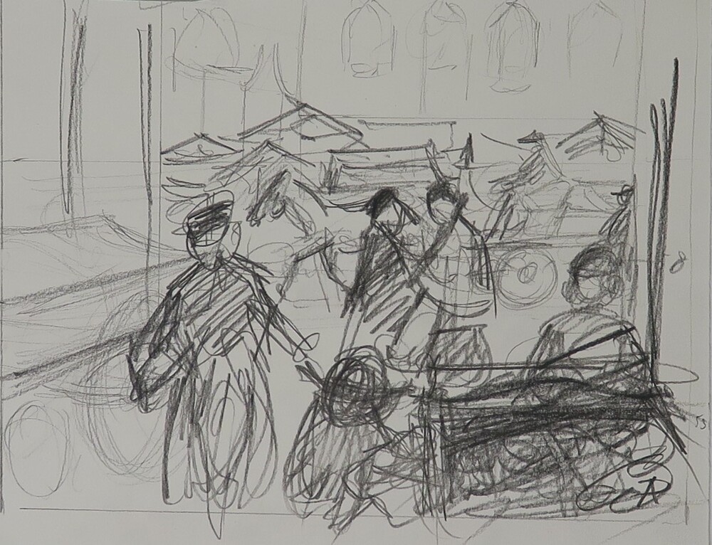 Mensen bij het stadhuis, voorstudie kalenderplaat 'S...