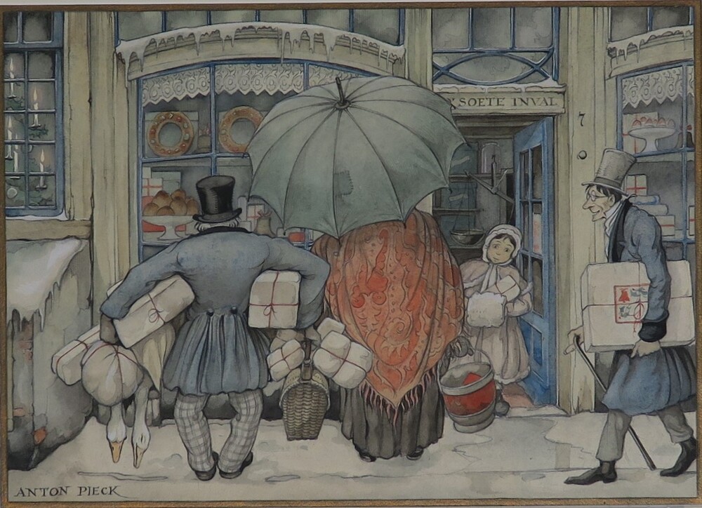 Kalenderplaat 'Winkelend paar voor bakkerij d'Soete ...