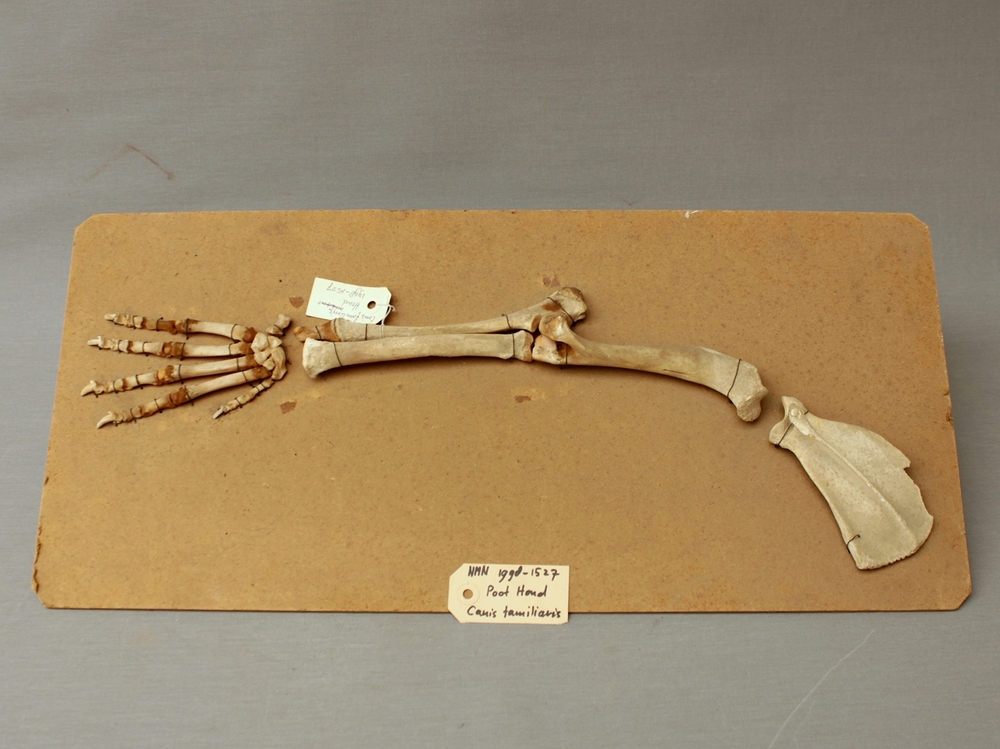 Hond; skelet voorpoot op strokarton