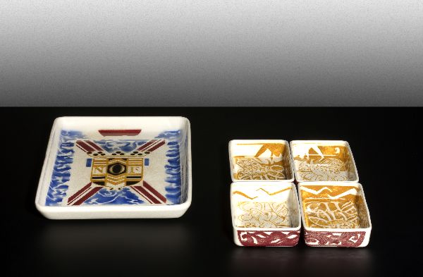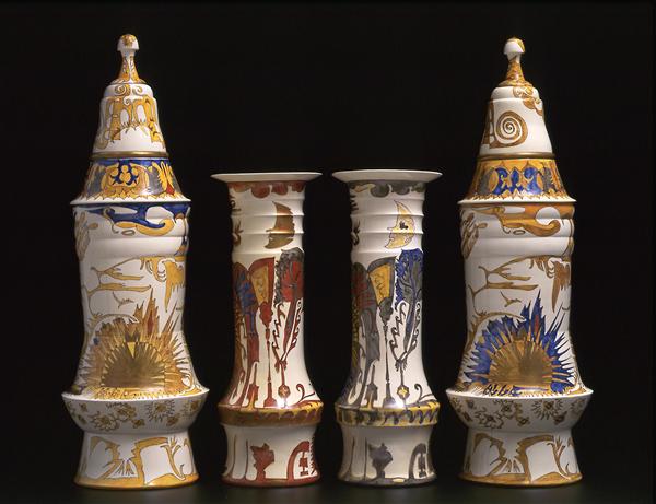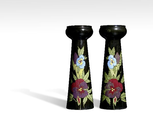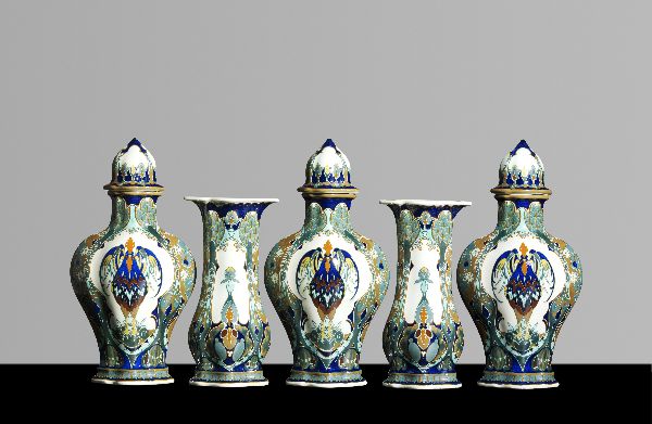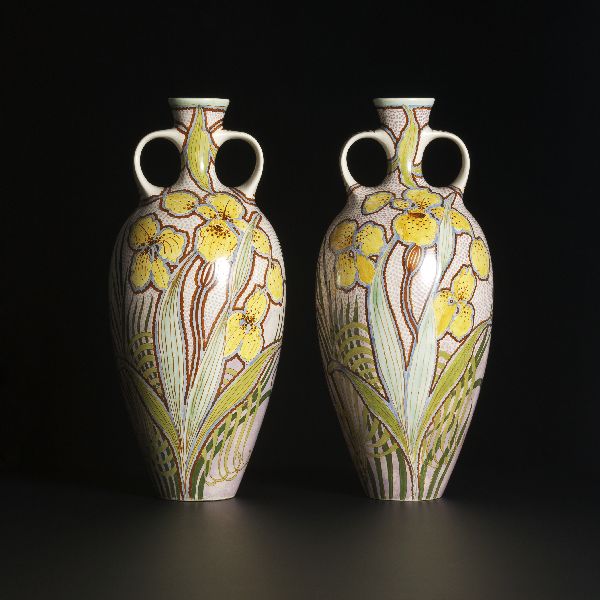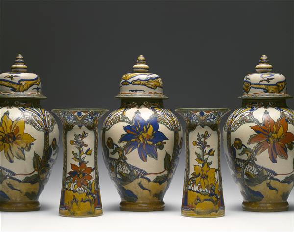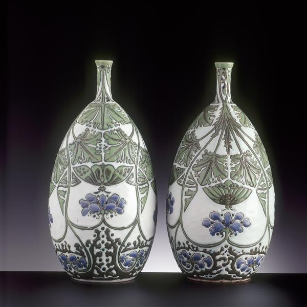 Stel vazen, gedecoreerd met gestileerde bladeren, bl...