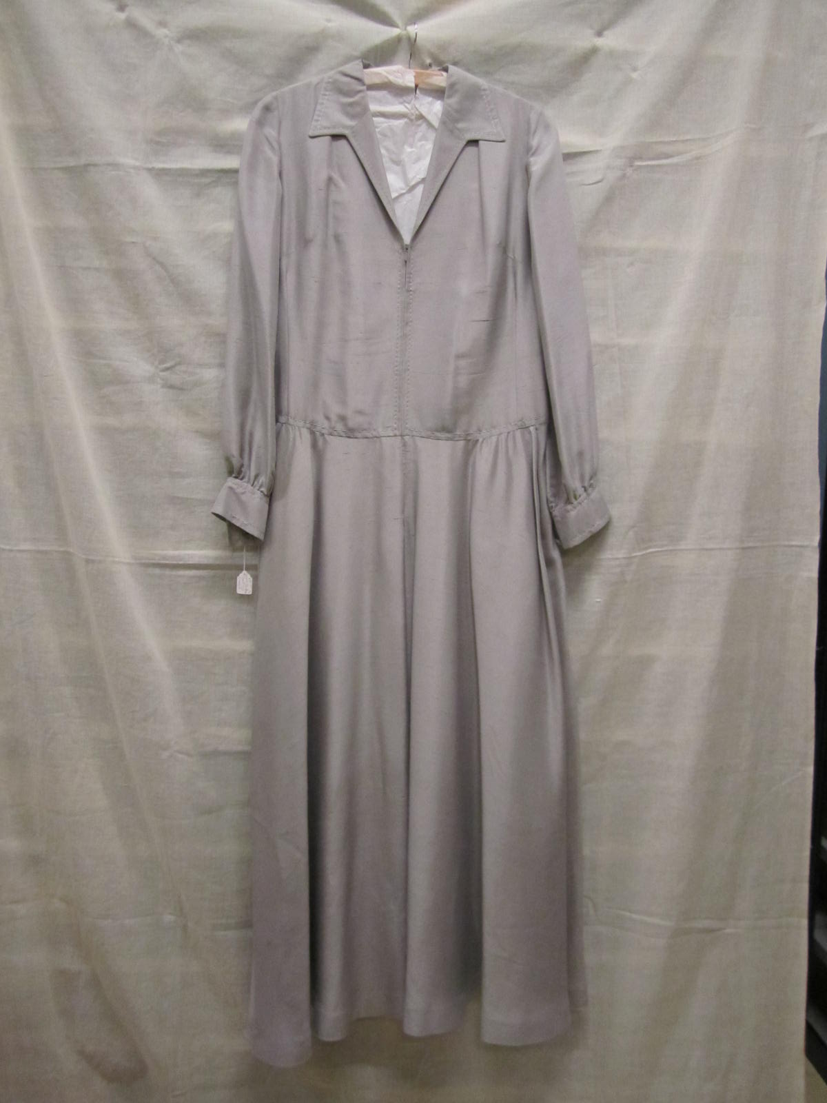 Ensemble, Jurk van zilvergrijze zijde en pumps van z...