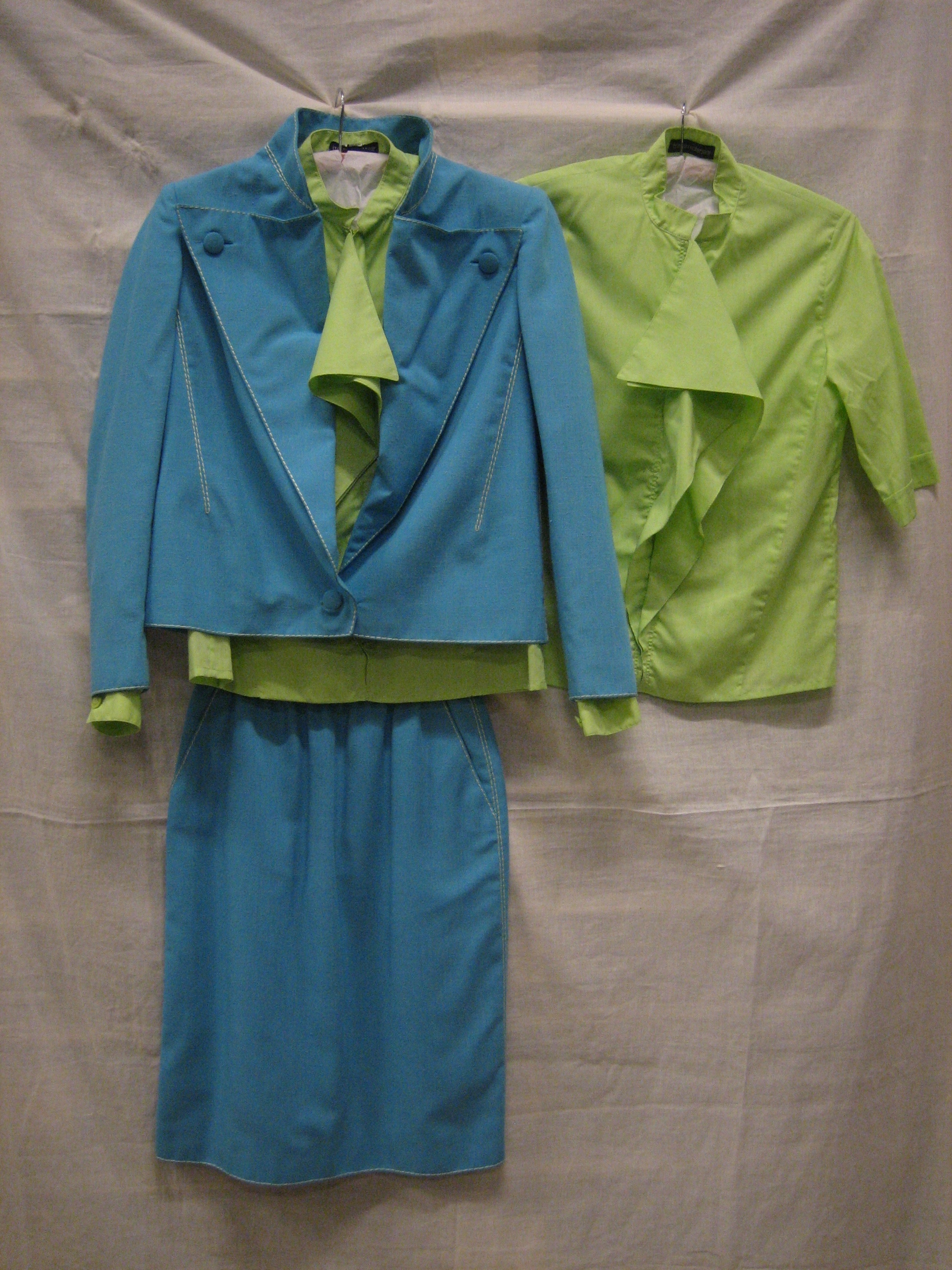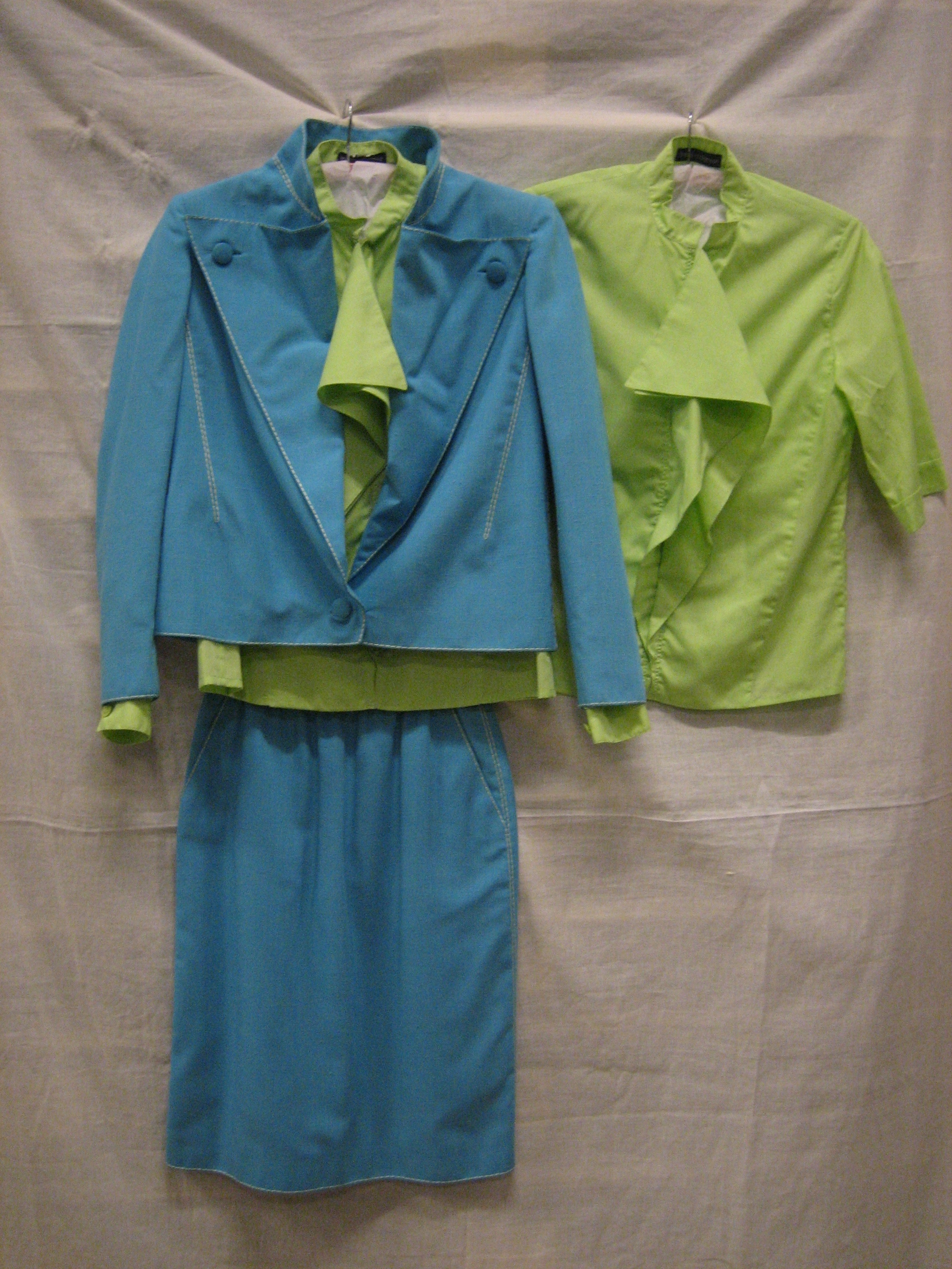 Ensemble, zgn.'Modam-hostesspak' van turquoi...