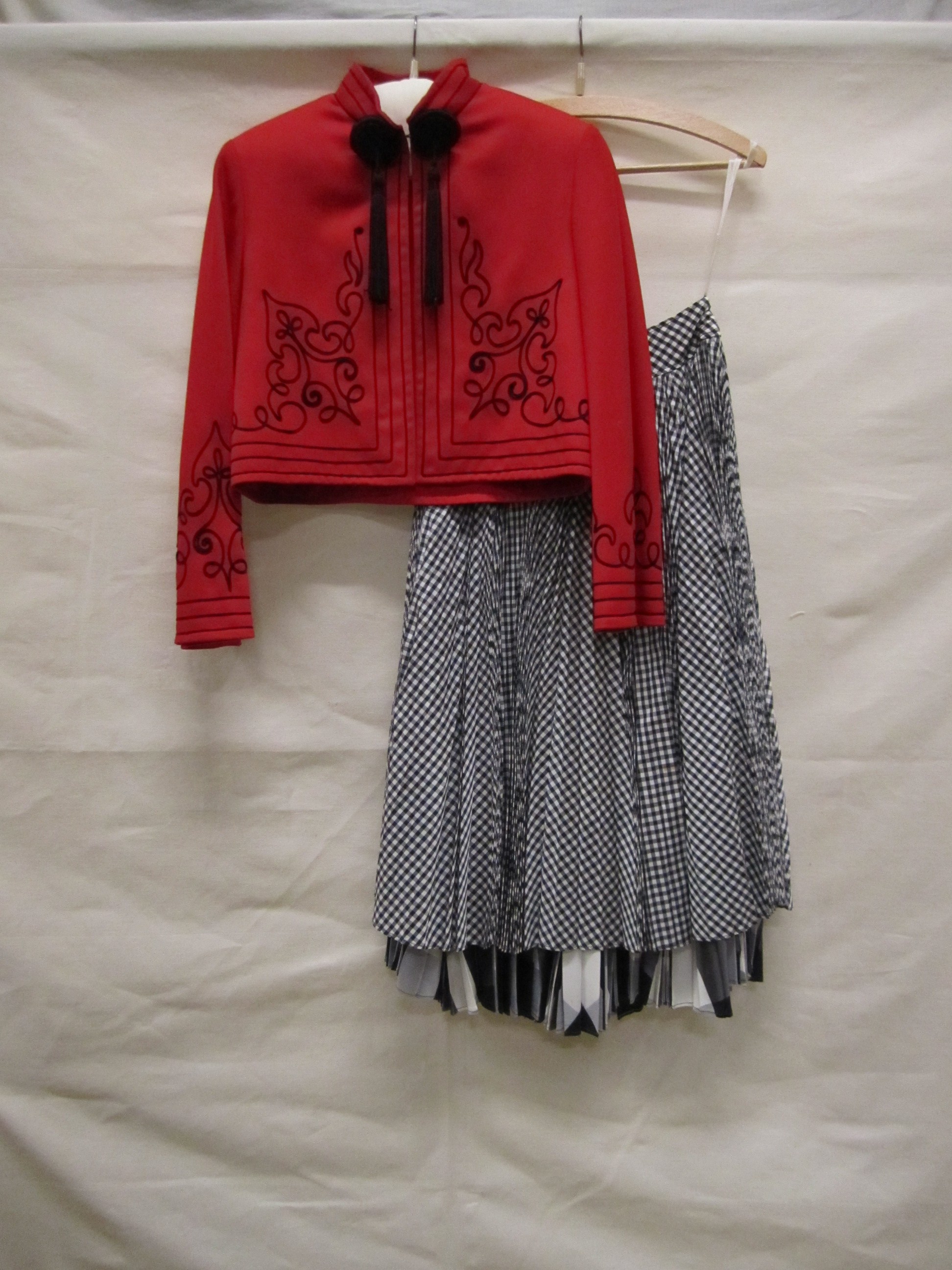 Ensemble bestaande uit jasje van rood wollen tricot ...