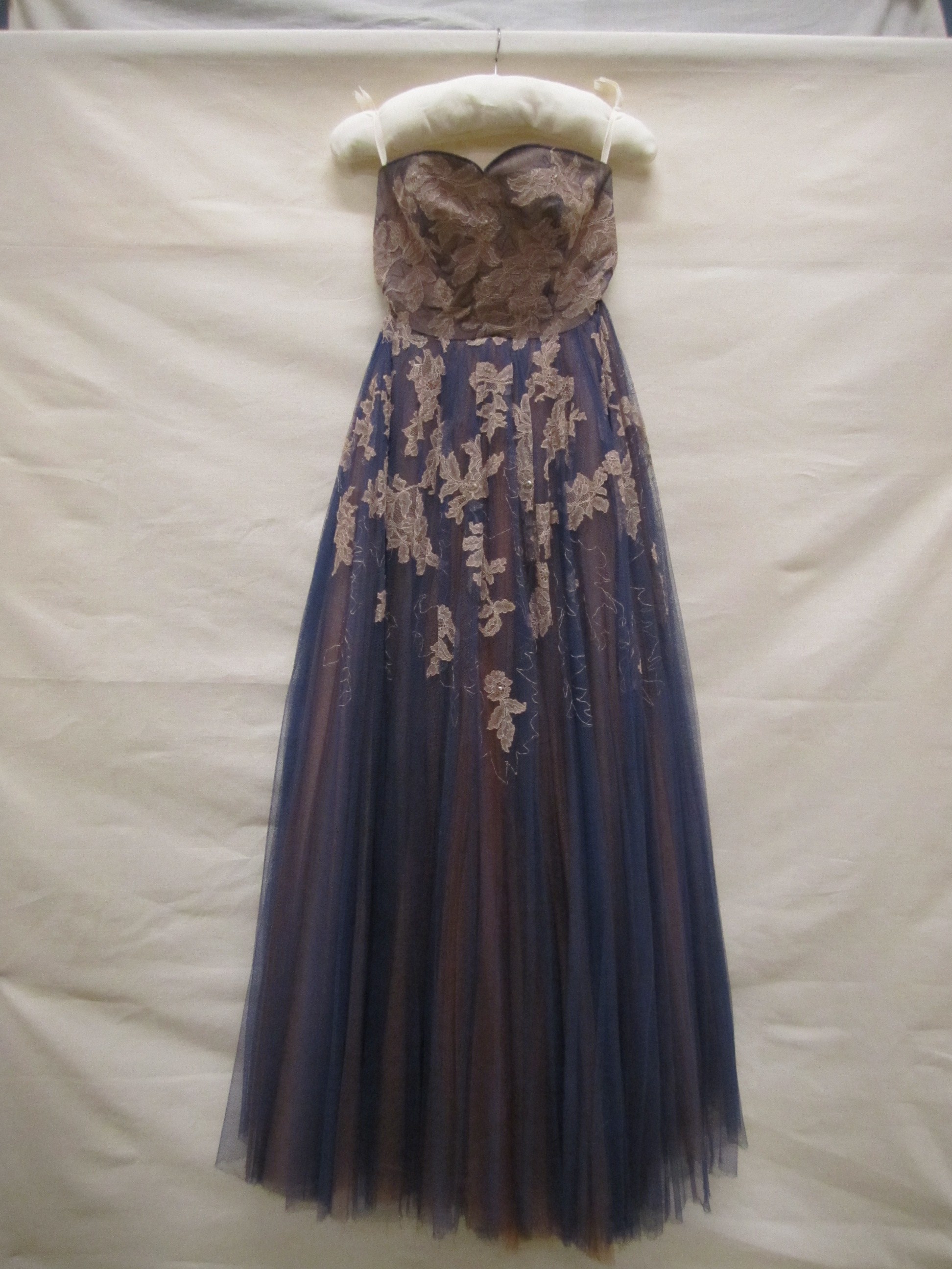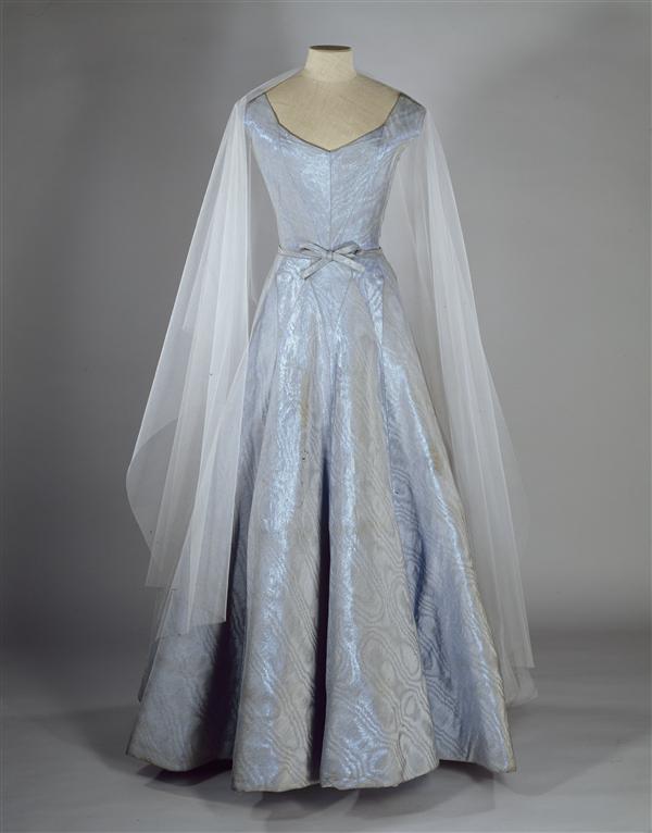 Avondensemble: avondjurk van grijsblauwe moiré ottom...