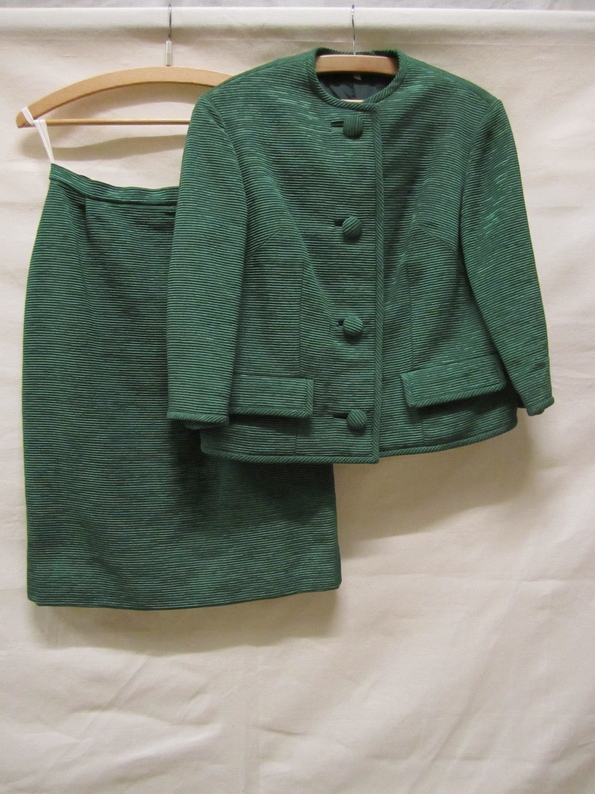 Ensemble bestaande uit mantelpak en hoed van groene ...