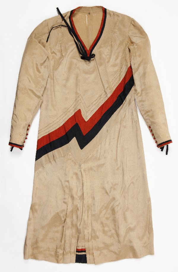 Jurk van crèmekleurige zijde met incrustaties van or...