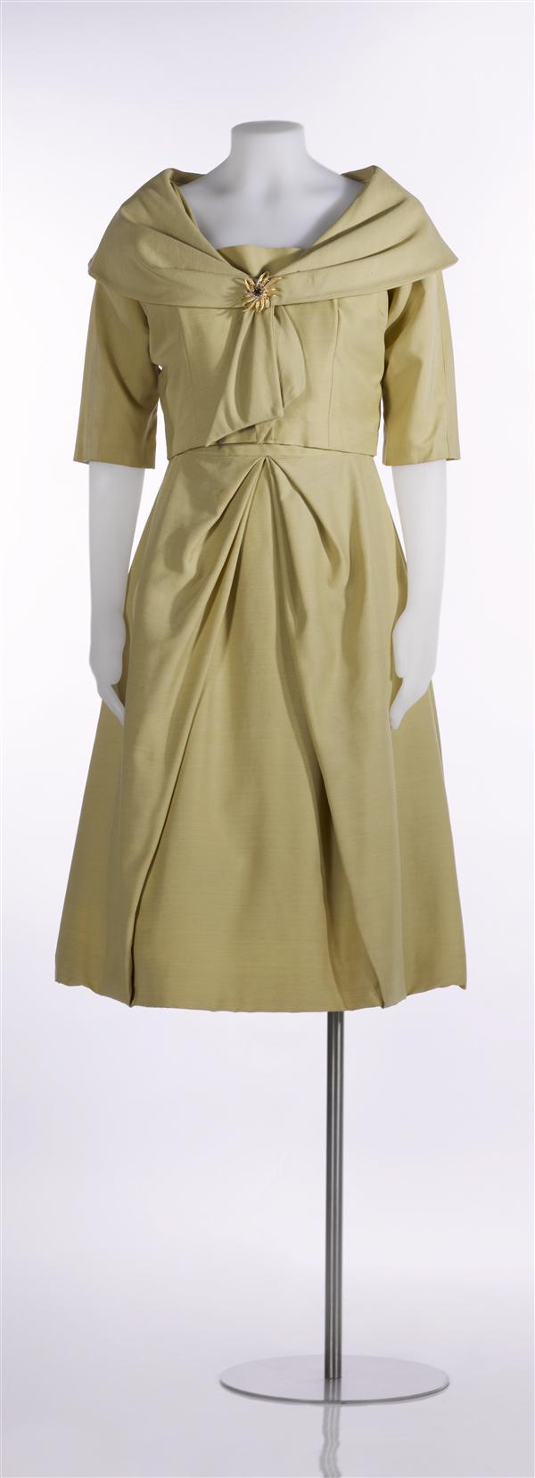 Cocktailensemble bestaande uit jurk van groen-gele w...