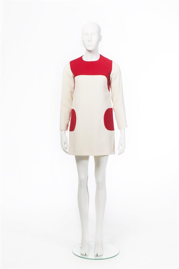 Mini-jurk van rode en witte wollen crêpe, kopie van ...