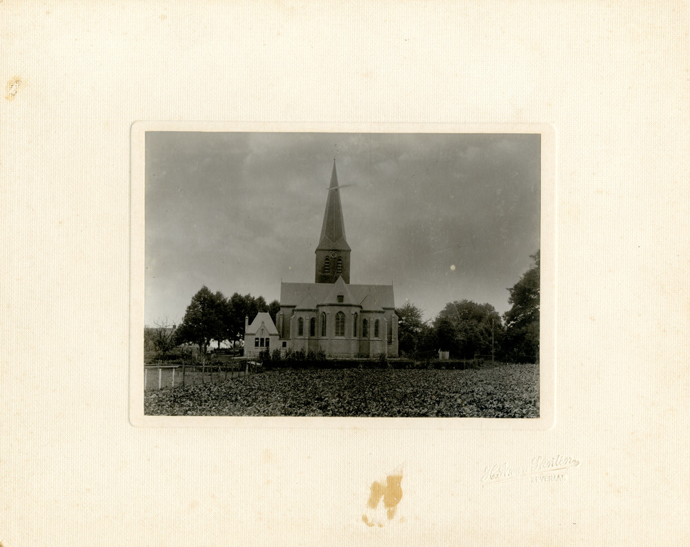 Zwart-wit foto van de kerk van Beek rond 1915