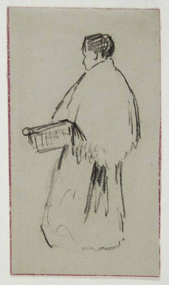 Figuurstudie van een vrouw met omslagdoek en boodsch...
