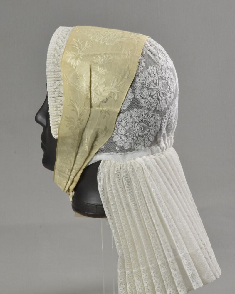 Mutsenlint, cremekleurig van zijde.