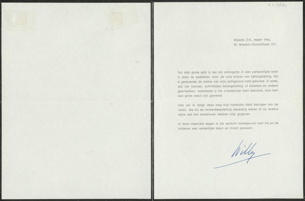 Kaart van de weduwe van J.J.F. Borghouts ("Peter Zuid")