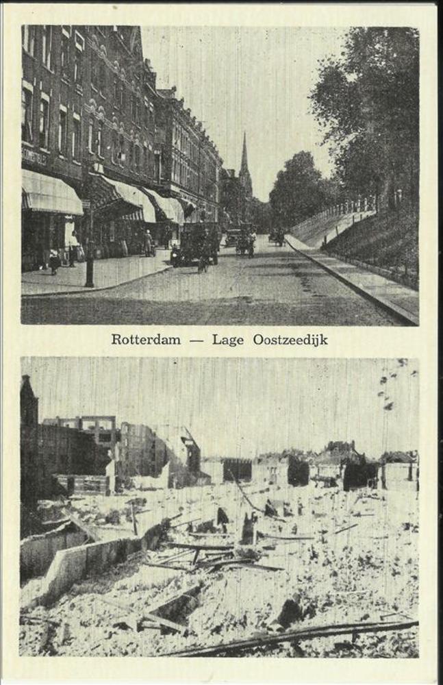 Rotterdam , Lage Oostzeedijk , voor en na het bombar...