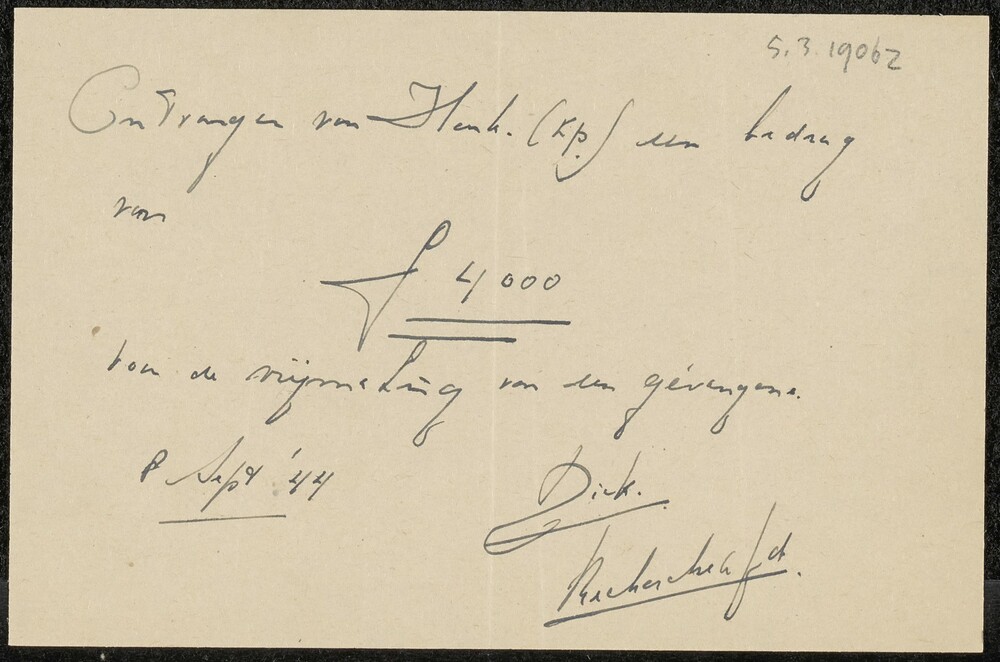 Geschreven ontvangstbewijs van Dick die van Henk (KP...