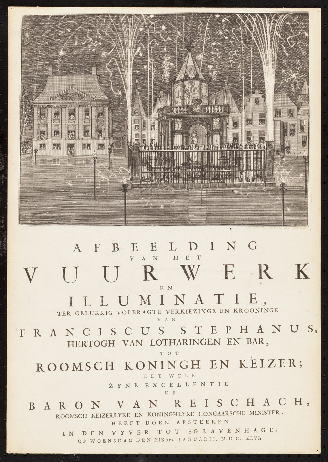 Afbeelding van het vuurwerk en illuminatie, ter gelu...