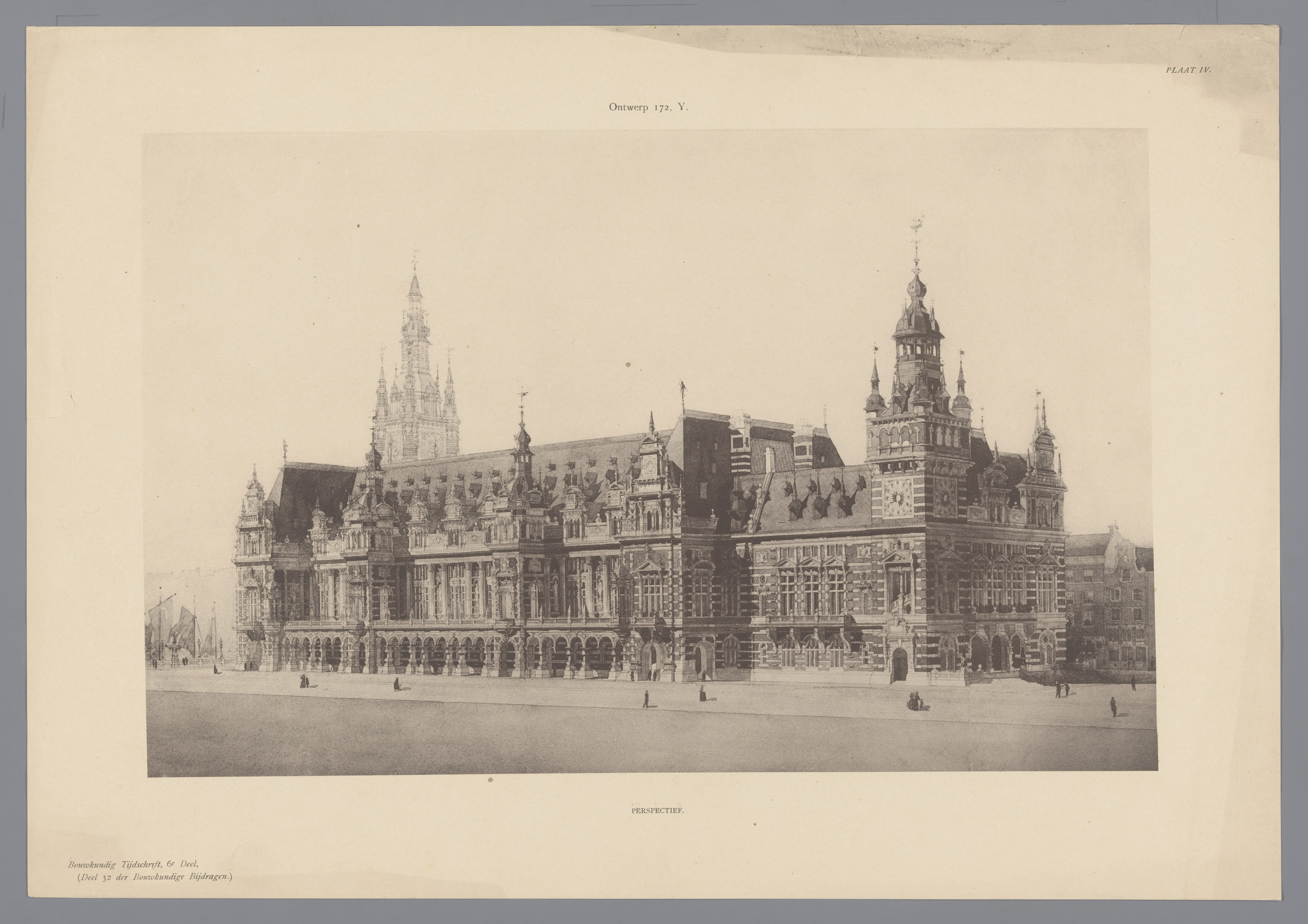 Ontwerp voor een nieuw beursgebouw in Amsterdam: doo...