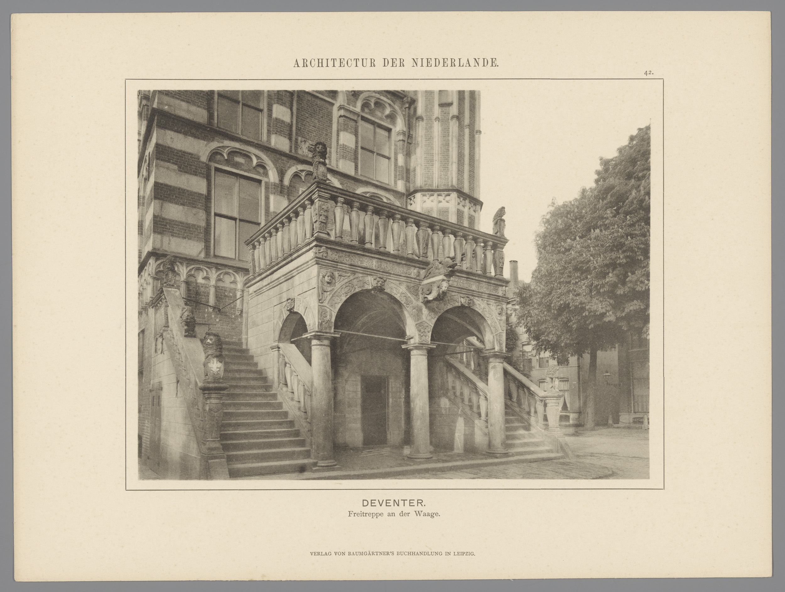 Gezicht op de trap van de Waag in Deventer