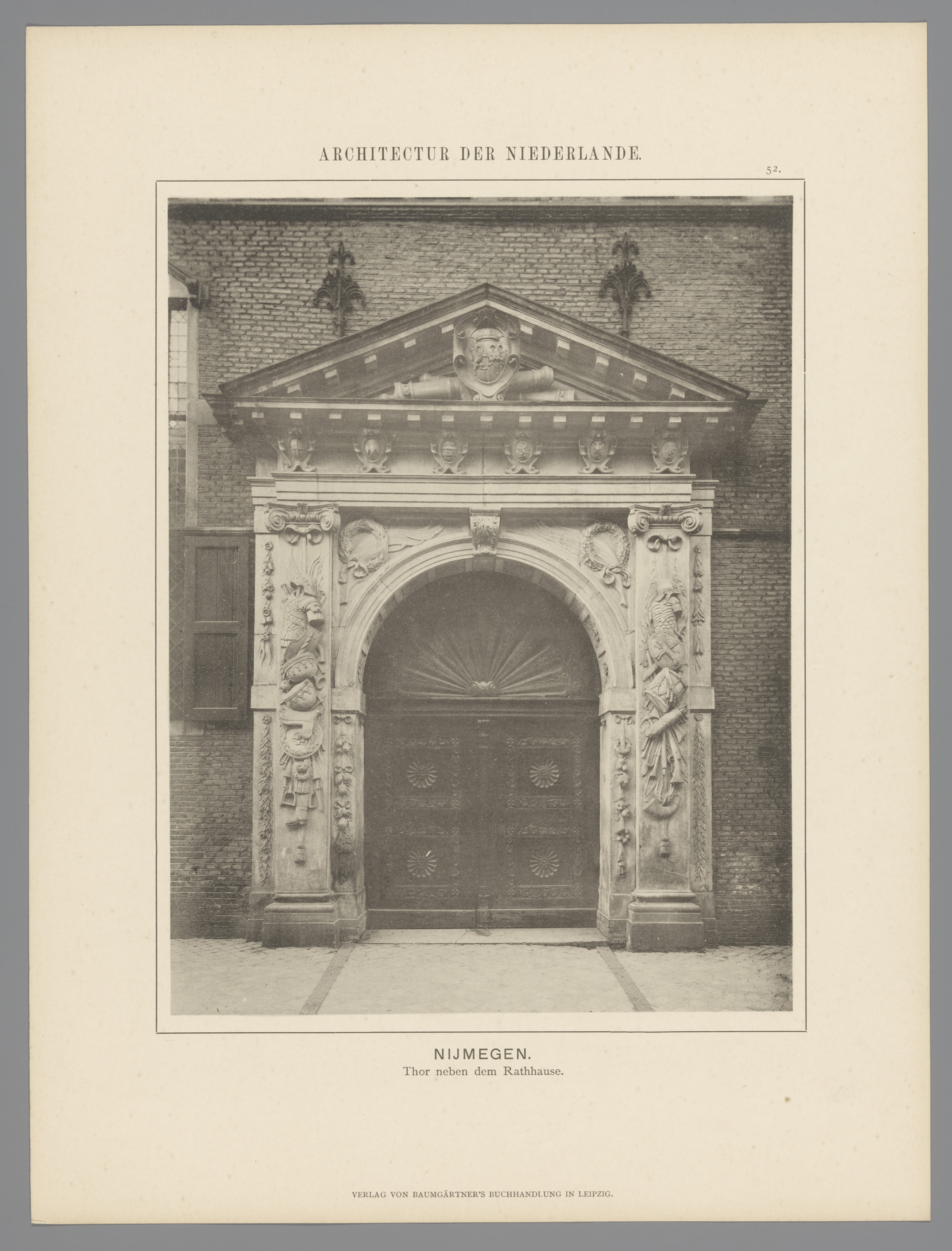 Gezicht op een poort van het stadhuis te Nijmegen